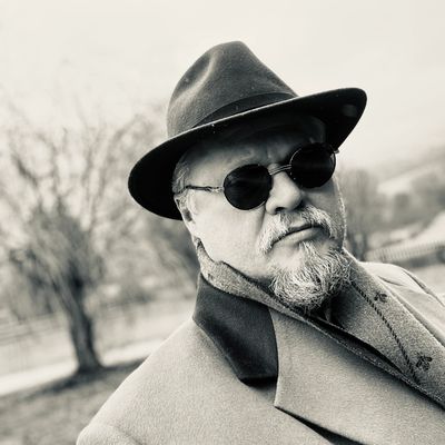 This is a picture of me, as a dandy, wearing my German güiltenhatten, a Gucci scarf, a custom-tailored cashmere long-coat, and the Ray-Ban San Diego Sunglasses of 1995, purchased in the airport in a fit of self-indulgence and jealousy after visiting a friend and riding in his Porsche 911 and staying in his beach house (Pacific Beach, so you know the sort of place it was...).